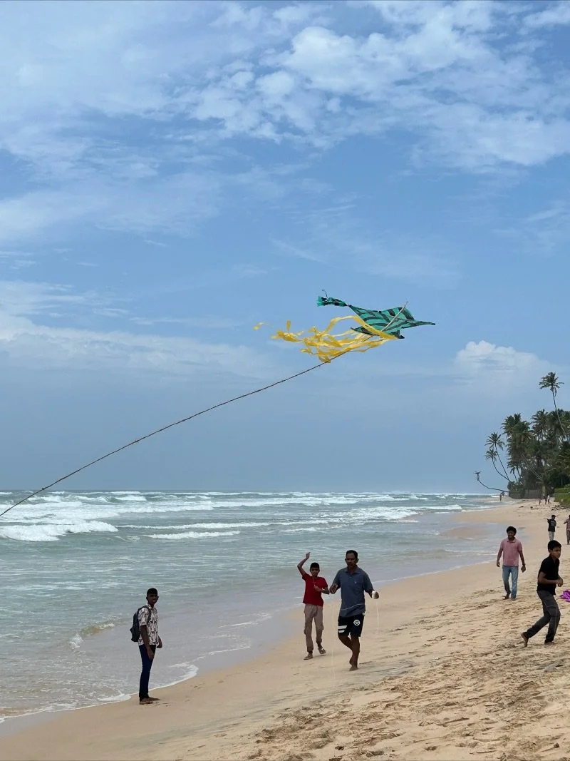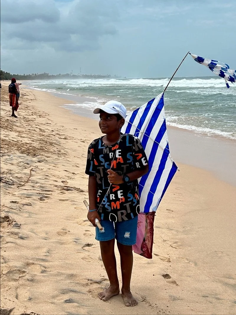 It is huge fun watching these kite squads arrive on the beach with their creations. Think world title boxing fight when the champion arrives in the arena, arms crossed and head nodding to his audience in grandiose self-approval, surrounded by the support team holding assorted paraphernalia and taking in every ounce of reflected glory. Well, it's no different to when 13-year-old Ranjit arrives at Kabalana beach having escaped school for the day with his posse. He stands and surveys the opposition with the kite strapped to his back like a gladiator's shield. Little brother Rakeet holds the tail to prevent damage while Kasun and Janith scuffle to hold the repair kit which inevitably is a roll of sellotape. Squad leader always holds the main string spool with his deputies rushing around offering advice while being instructed to retrieve the kite from numerous failed launches.