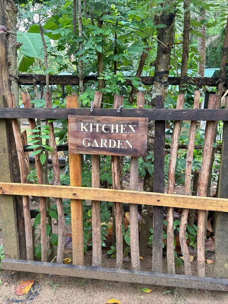 So, at the tender age of 23, Ravindu finds himself running the estate with just his wit, work ethic and his family's experience of tropical agriculture. And honestly, within a few weeks, it was as if the fairy godmother of horticulture had arrived and waved her hoe across the land. Our kitchen garden is utterly transformed. Half-dug drainage ditches are now terraced with coconut husks. We have hand-built steps made with the off-cuts of our cinnamon harvest. We have anti-peacock scarecrows and flags and passion fruit vines trained along string just out of the reach of the monkeys. Then he was on to our new fruit tree orchard; lime, lemon, avocado, mango, guava and soursop all planted with protective fences and nourished with coconut husk and nitrogen rich gliricidia leaves. And then a moment of undiluted joy familiar to vegetable gardeners the world over, Ravindu arrives at the Lodge kitchen and hands to the chef armfuls of kankun (water spinach), okra, tomatoes and radish; leaves dripping with the overnight rain and fresh soil clinging to the shining roots.